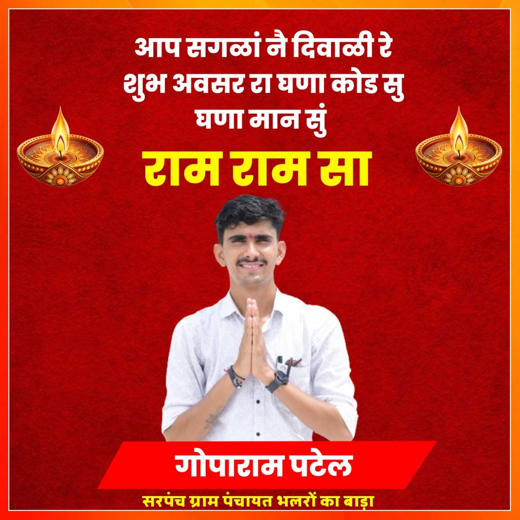 दिवाली रा राम राम सा Post author:Goparam Patel Post published:October 21, 2025 Post category:Uncategorized Post comments:0 Comments You Might Also Like सरपंच गोपाराम पटेल हुए सम्मानित उपखंड स्तर पर August 19, 2025 सरपंच पटेल ने किए मां हिंगलाज के दर्शन October 22, 2025 ग्राम पंचायत भलरों का बाड़ा मुख्यालय पर पशु चिकित्सा उप केंद्र स्वीकृत December 19, 2024 Leave a Reply Cancel replyCommentEnter your name or username to comment Enter your email address to comment Enter your website URL (optional) Save my name, email, and website in this browser for the next time I comment. Δ